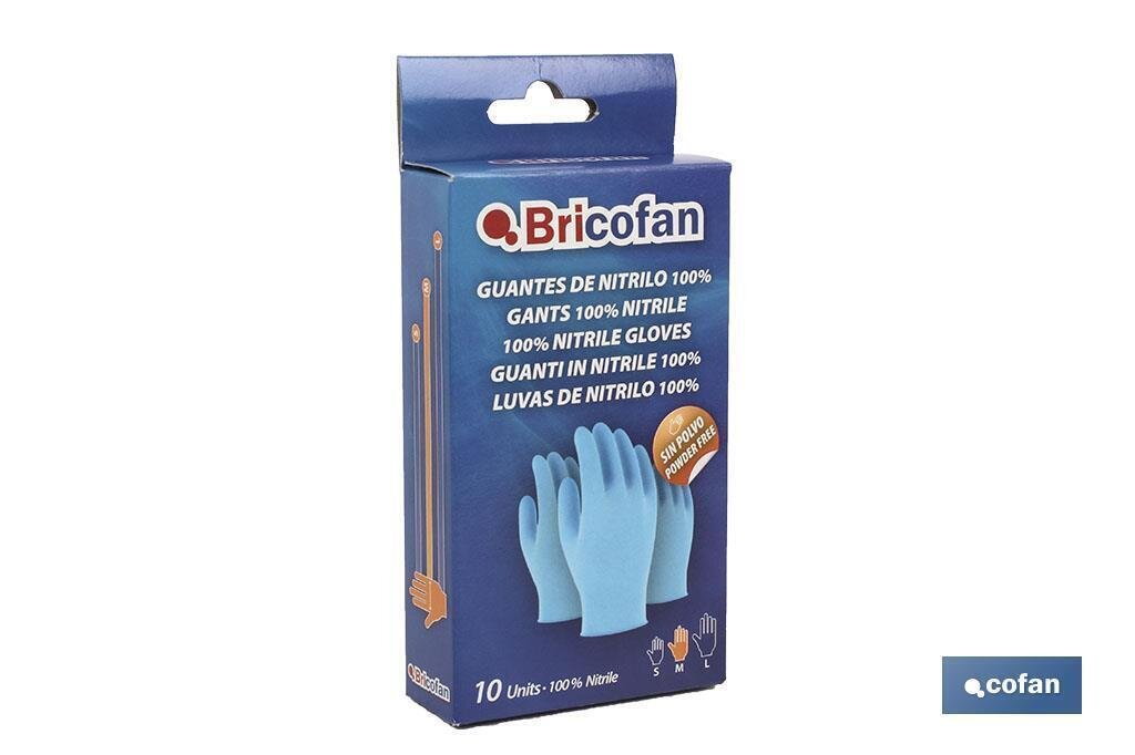 Caja dispensadora de 10 guantes finos 100% nitrilo sin polvillo. Compatibles para uso alimentario. Longitud 24 cm. AQL 1,5. 1ud