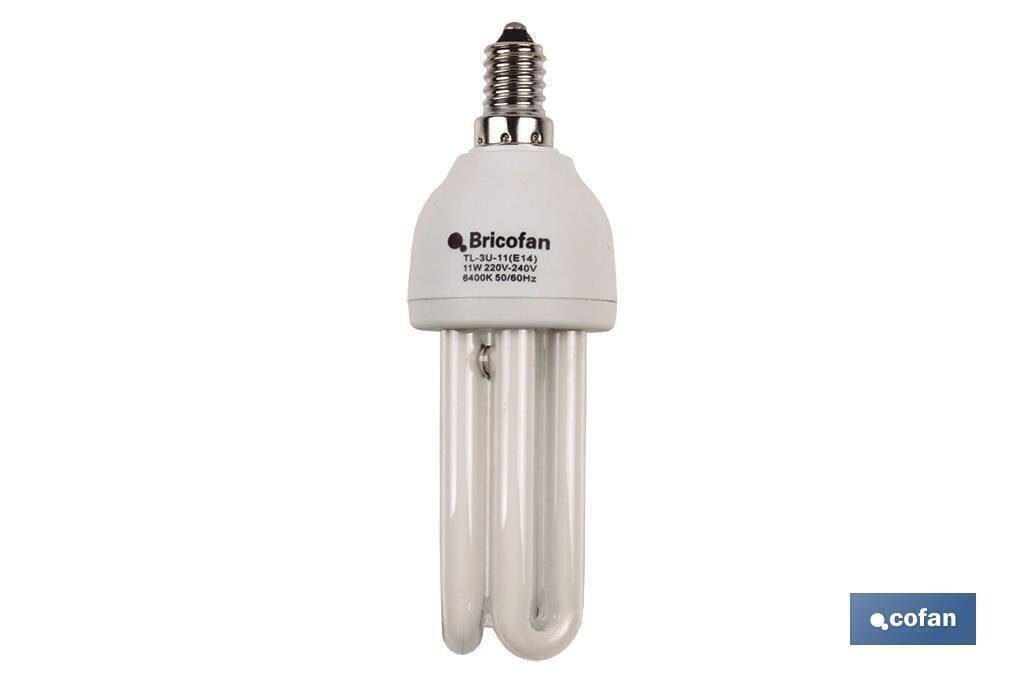 L�mpara de bajo consumo luz tricolor de 3U 11w y casquillo peque�o E14. Luz Fr�a (6400k) y luz C�lida (2700k) 1ud